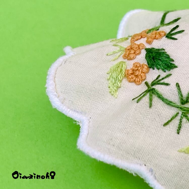 さらに、ヘアドレスにもミモザの刺繍を施し、全体として一層の魅力を引き立てています。
