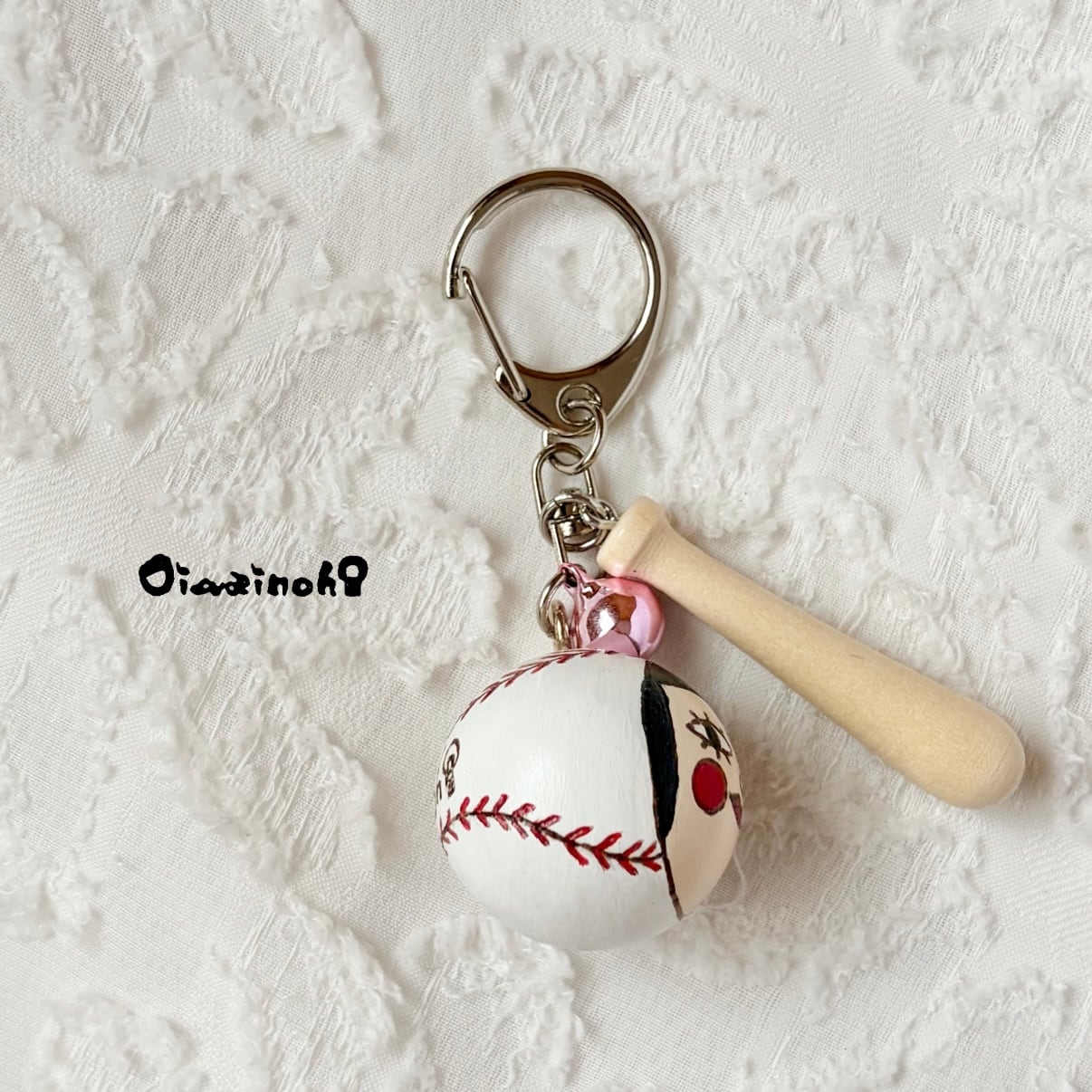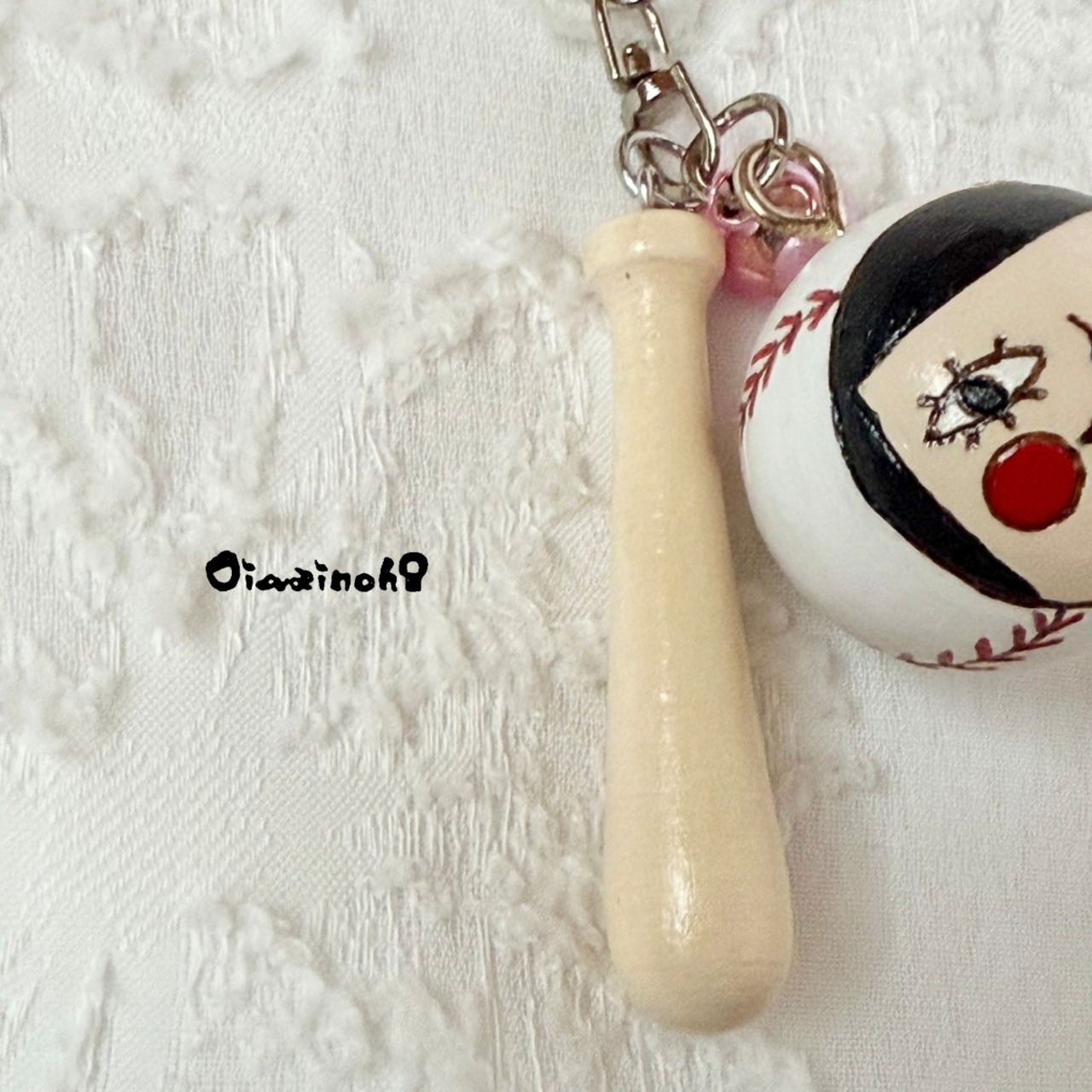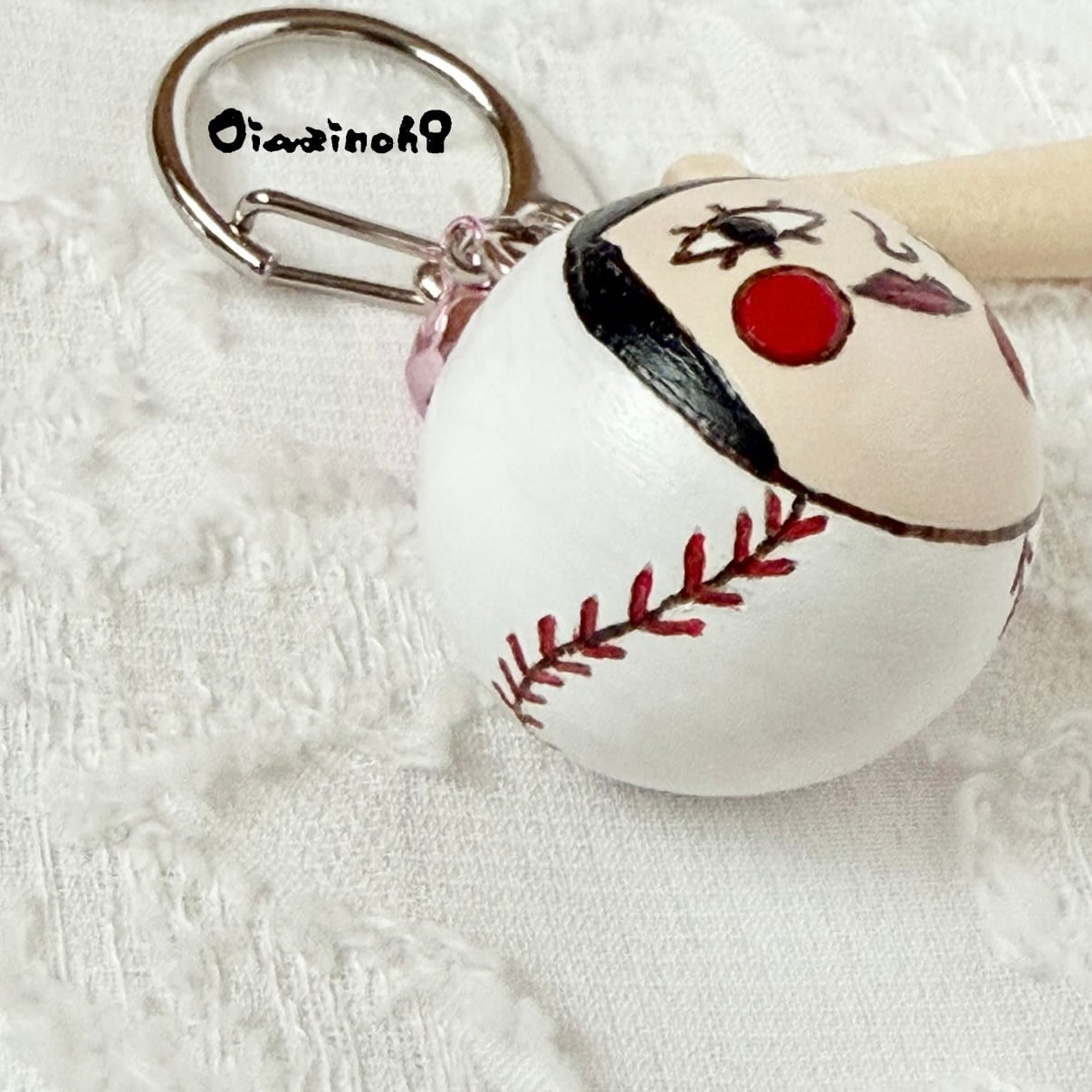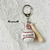 At first, I was thinking of making a key ring with only balls, but I really wanted to attach a bat. And while I was looking for it, I discovered a miniature bat!