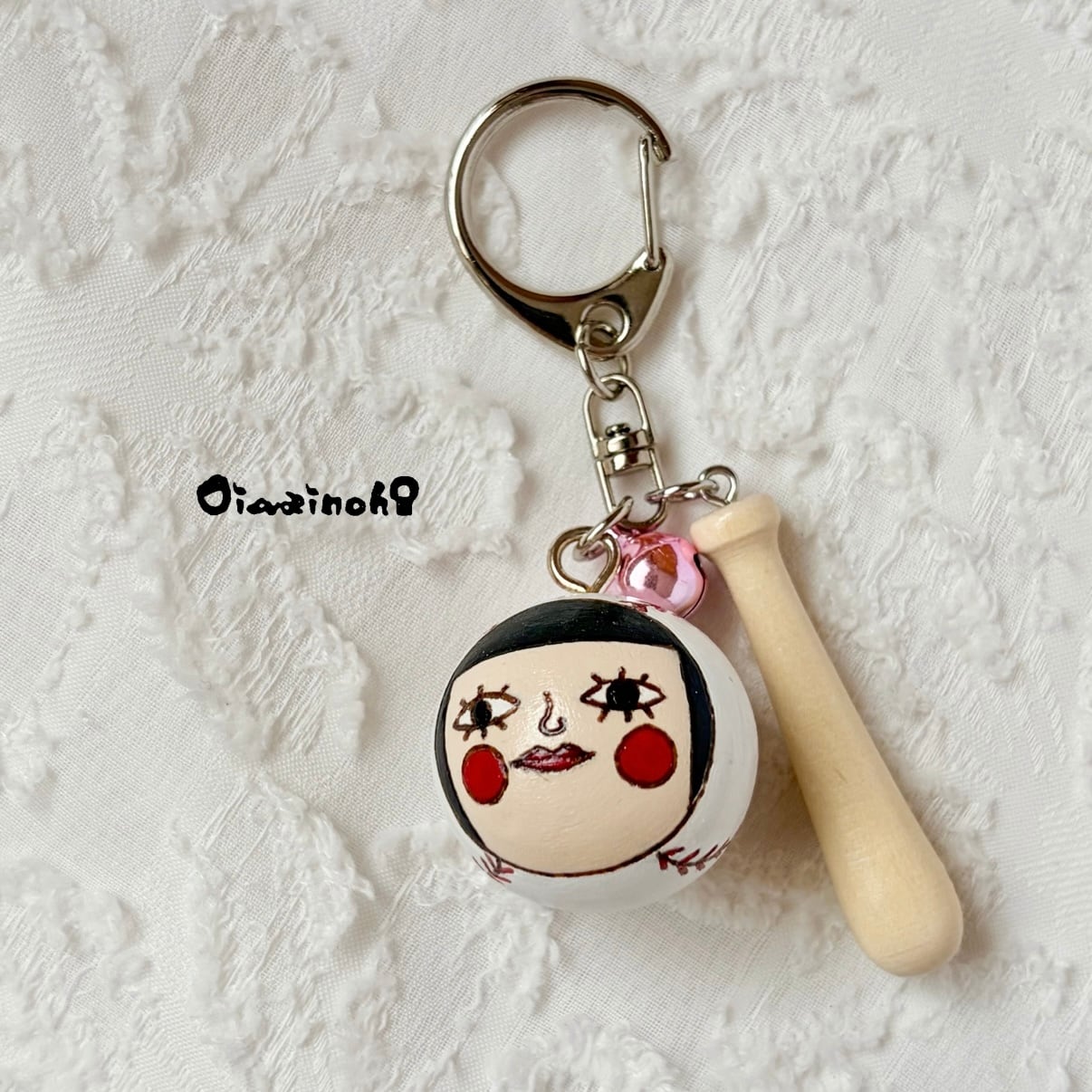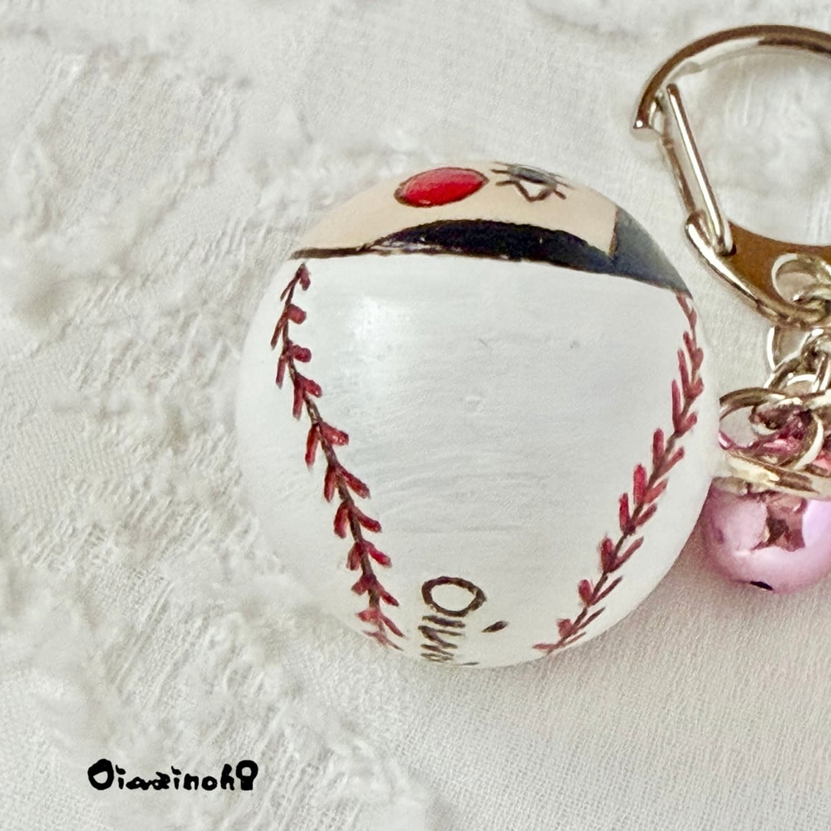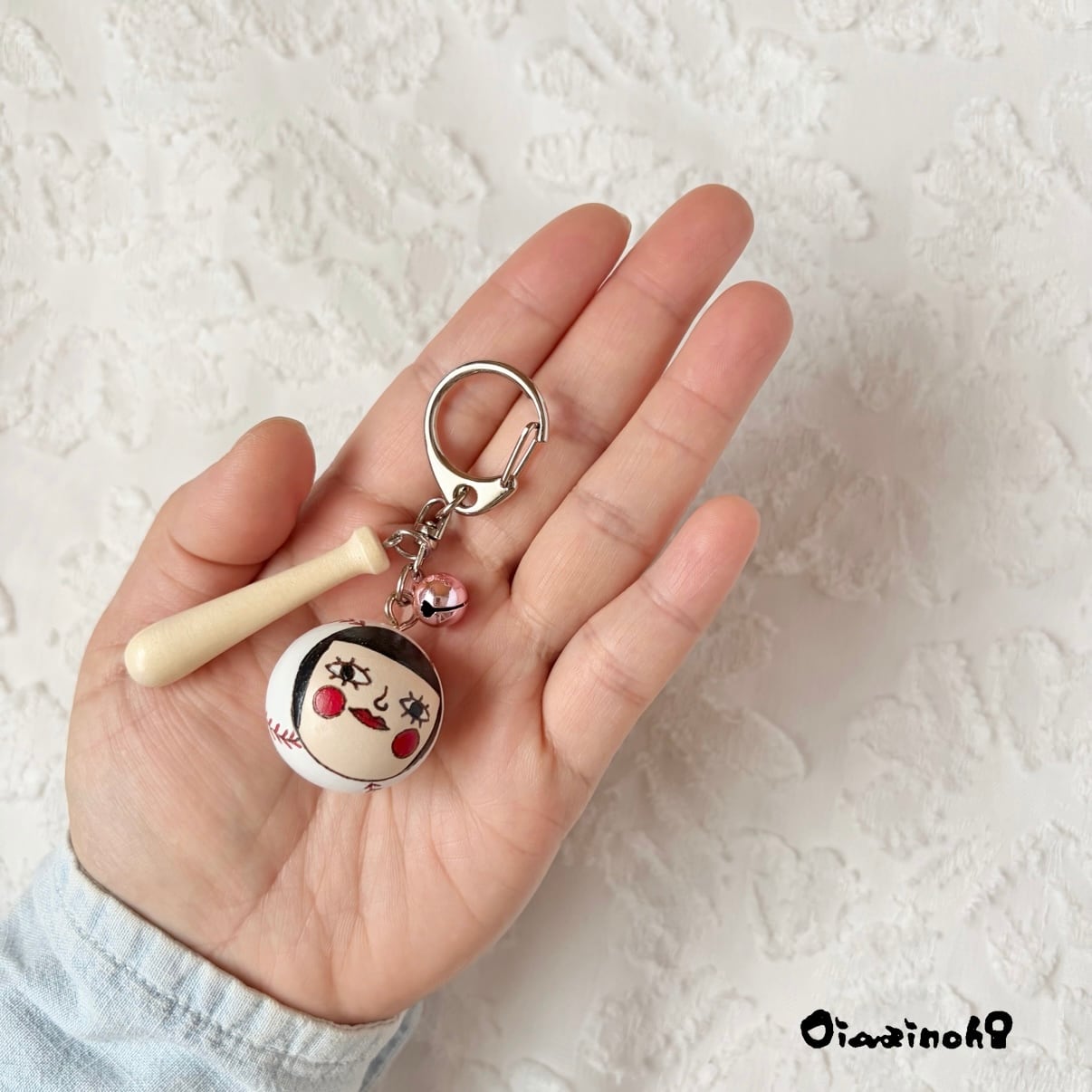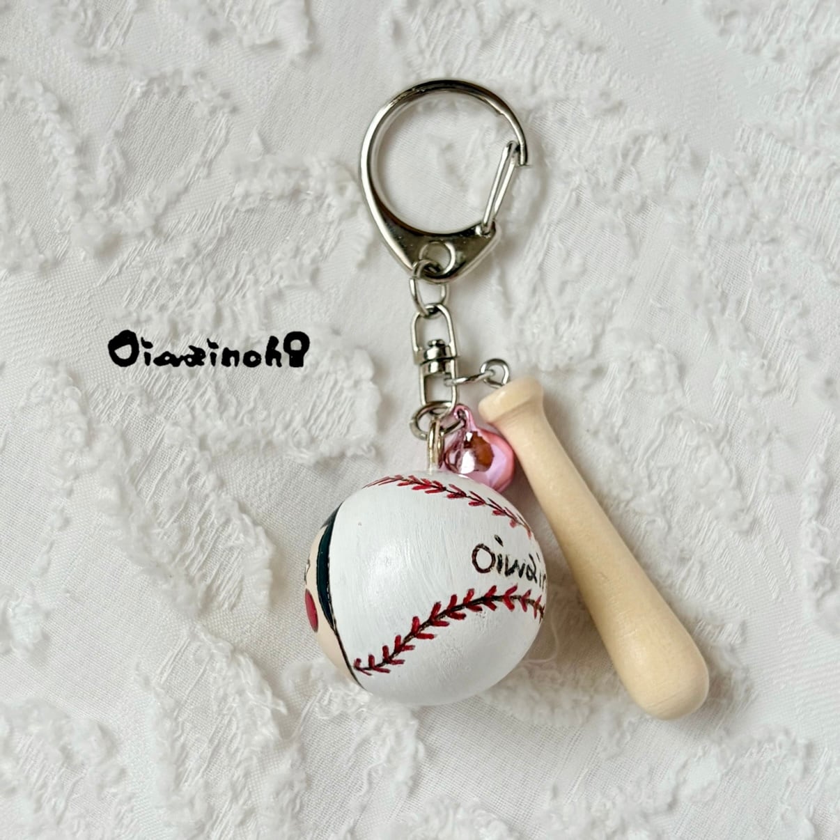 At first, I was thinking of making a key ring with only balls, but I really wanted to attach a bat. And while I was looking for it, I discovered a miniature bat!