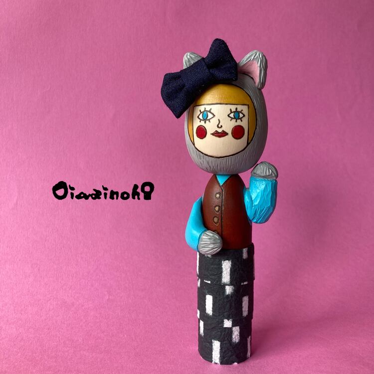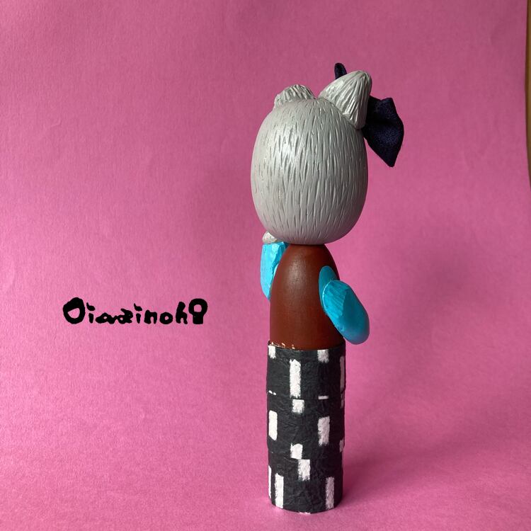 リボンをつけてちょっとおめかしした招きねこけし娘さんです♪