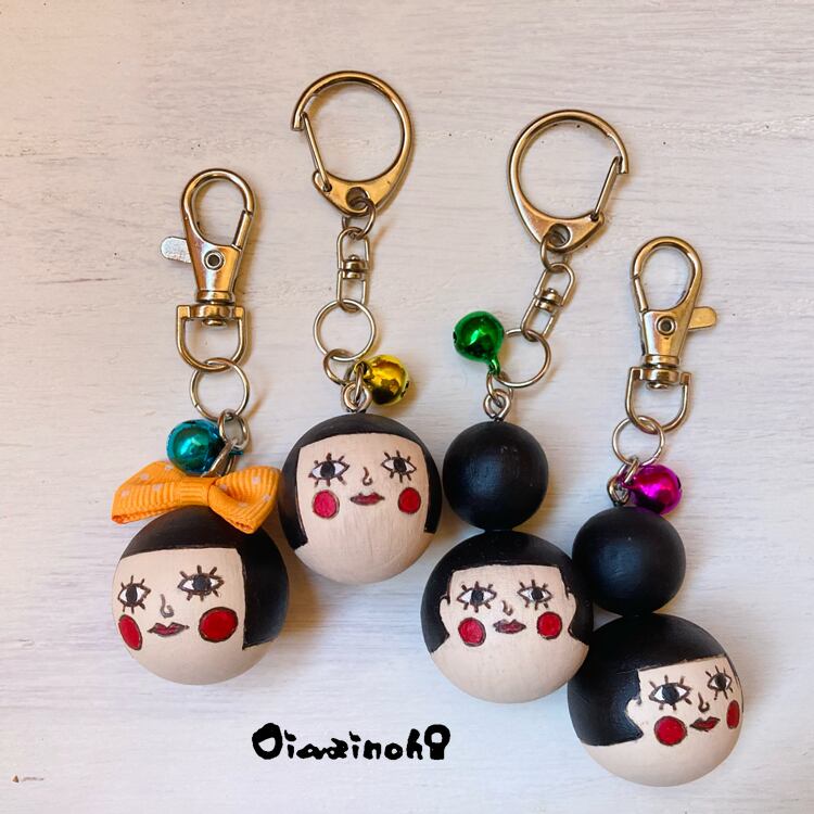カバンや鍵につけて持ち歩くと、リンリンという鈴の音に合わせてコロコロ弾むこけし娘さんが、なんともお出かけを楽しんでいるように見えます⭐︎